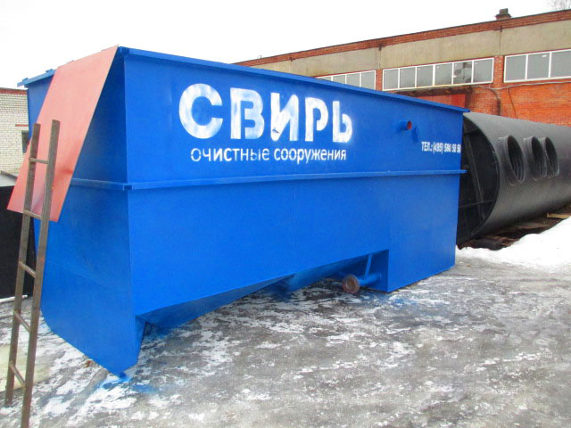 Установка «СВИРЬ-1,5» с производительностью 1,5 л/сек. предназначена для очистки поверхностных сточных вод (дождевых и талых) на территориях автозаправочных станций, автостоянок, складов горюче-смазочных материалов, нефтебаз, промышленных зон и жилых районов с примерной площадью водосбора до 0,125 га.